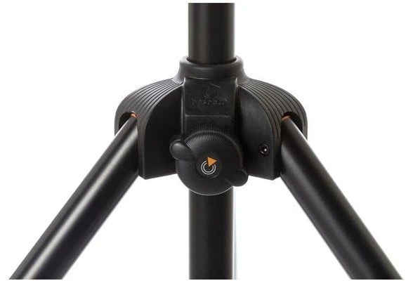 Strong and incredibly stable pneumatic speaker stand with innovative design that features aluminium tube structure (35 x 1.5 mm) and steel legs (35 x 1.2 mm) with non-toxic powder paint coating. Stand provides 90 kg carrying capacity and adjustable height from 133.5 cm to 213 cm, with maximum opening 120 cm. Weight: 4 kg. Black and orange colour combination.
