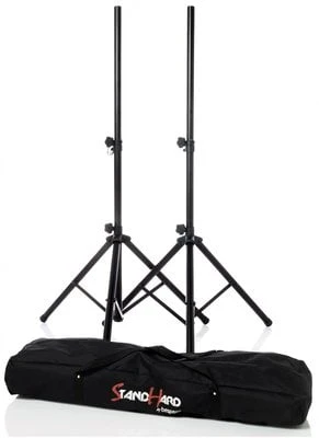 Set of two steel speaker stands. The set includes a nylon cover for secure transport.