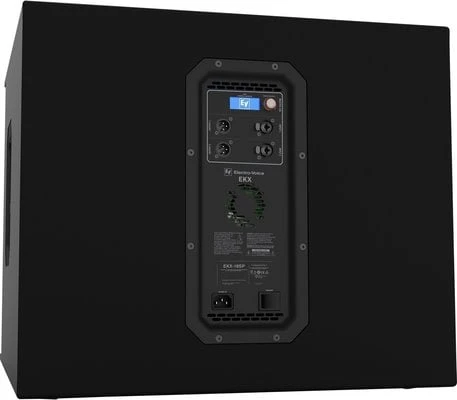 Active bass speaker system from EKX series. It is fitted with 18″ speaker and High-efficiency 1300 W Class D power amplifier that delivers up to 134 dB peak SPL. System has frequency response 40 Hz – 150 Hz (-3 dB) and 35 Hz – 180 Hz (-10dB), Cardioid Control Technology (allows output to be steered towards the audience with up to 35 dB reduction), Intelligent thermal management with fan that has variable speeds and is controlled by several temperature sensors, QuickSmartDSP procesing with single-knob user interface, and intuitive menu navigation via LCD. Connection: 2 XLR/TRS combo jacks and 2 XLR link outputs. The body of the speaker is made of 15 mm plywood with surface resistant finish EVCoat with grill from 18 AWG steel with powdercoat. Dimensions: 520 mm x 606 mm x 612 mm. Weight: 32,8 kg. Colour: Black.