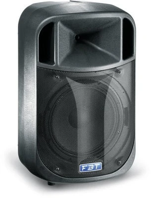Two-way, bass-reflex active speaker from J series that introduces the technological developments to achieve a far superior efficiency and linearity. It features high efficiency class D amplifiers (350 + 100 W) that have been designed in FBT’s R&D laboratories and have a switch mode power supply. There is also an on-board digital signal processor with 4 dynamic EQ presets and protections for high SPL (up to 128 dB) and high reliability. It is equipped with a 12” custom woofer and a 1” HF custom AF compression driver, as well as a 90×60-degree constant directivity horn. The speaker’s polypropylene enclosure is equipped with integrated handle and two M10 anchoring points. Frequency response: 50 Hz-20 kHz. Dimensions: 410 x 663 x 387 mm. Weight: 13.7 kg.