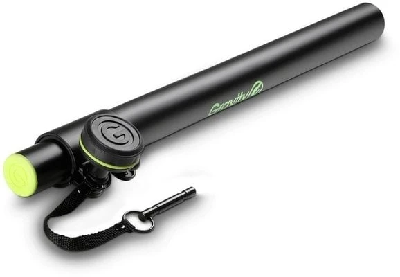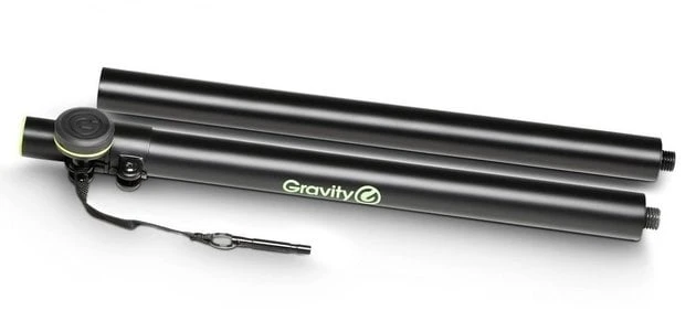 Adapter stand, a 35 mm pole to mount satellite speakers on subwoofers. The heavy duty construction of powder coated steel is height adjustable from 105 to 140 cm. The SP 2332 TPB features an M20 bottom end and steel collar with safety pin to securely lock the extension pole in place. The base tube is a two-piece assembly that can be unscrewed to result in an amazingly short transport length of 54 cm only. In a black finish.