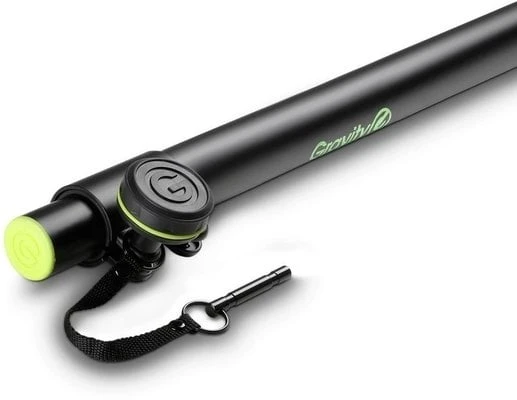Adapter stand, a 35 mm pole to mount satellite speakers on subwoofers. The heavy duty construction of powder coated steel is height adjustable from 82 to 140 cm. The SP 3332 B features an 35 mm bottom end and steel collar with set screw and safety pin to lock the extension pole in place. It comes with a convenient rubber retainer to secure the safety pin during transport. In a black finish.