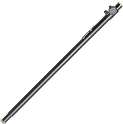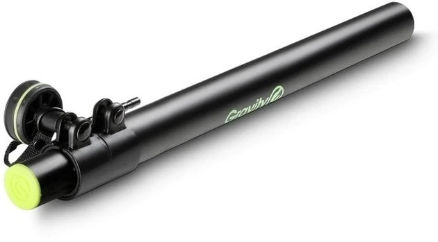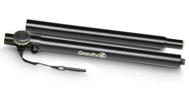 Adapter stand, a 35 mm pole to mount satellite speakers on subwoofers. The heavy duty construction of powder coated steel is height adjustable from 105 to 140 cm. The SP 3332 TPB features an 35 mm bottom end and steel collar with safety pin to securely lock the extension pole in place. The base tube is a two-piece assembly that can be unscrewed to result in an amazingly short transport length of 54 cm only. In a black finish.
