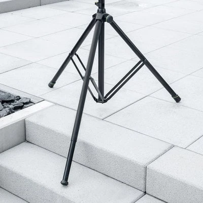 Leveling leg for loudspeaker and lighting stands. Place your speaker or lighting stands securely on uneven or slanted subfloors including steps and stairs. Gravity’s VARI-LEG 01 leveling leg provides continuously variable leg length compensation up to 25 cm. It fits all leg tubes with 33 to 37 mm inner diameter, mounts quickly and easily without the need for tools and remains on the stand when no leveling is required.
