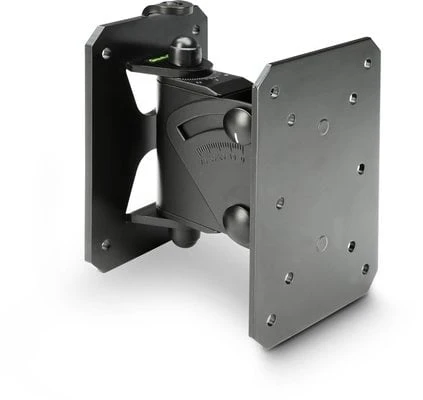 Wall mount, made of powder-coated steel and providing horizontal plus vertical adjustment for precision aiming. Supports loudspeakers up to 20 kg. Side to side swivel is 160° while down tilt is continuously variable to a maximum of 40°. The heavy duty 5 mm wall plate features a safety rope eyelet in accordance with BGV C1. Comes with a universal plate that attaches to the speaker for easy hook-in mounting. In a black finish.