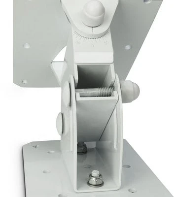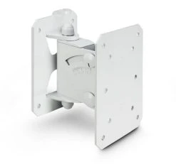 Wall mount, made of powder-coated steel and providing horizontal plus vertical adjustment for precision aiming. Supports loudspeakers up to 20 kg. Side to side swivel is 160° while down tilt is continuously variable to a maximum of 40°. The heavy duty 5 mm wall plate features a safety rope eyelet in accordance with BGV C1. Comes with a universal plate that attaches to the speaker for easy hook-in mounting. In a white finish.