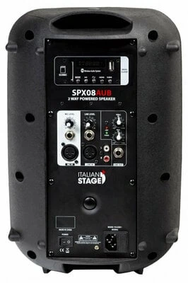 8” dual-band plastic speaker with multimedia player: Usb Flash Drive, Sd Memory Card, STEREO Bluetooth Device, Remote Control. 8″ VC 1.5 “subwoofer and 1″ VC 1″ driver. It offers line output XLR OUT + ¼” JACK JACK OUT and at the same time 2 inputs of which one line input XLR IN + 2 x RCA and microphone input XLR IN + ¼” JACK IN. RMS power of AB class is 120 + 30 W. Frequency response is 60 Hz-20 kHz and peak spl 123 dB. Powered from AC110V / AC230V.