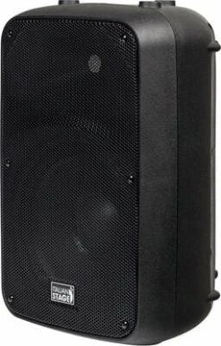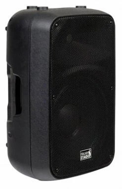 10” dual-band plastic speaker with 10″ VC 1.5″ subwoofer and 1″ VC 1″ driver. It offers line output XLR OUT + ¼” JACK JACK OUT and at the same time 2 inputs of which one line input XLR IN + 2 x RCA and microphone input XLR IN + ¼” JACK IN. RMS power of AB class is 120 + 30 W. Frequency response is 55 Hz-20 kHz and peak spl 125 dB. Powered from AC110V / AC230V.