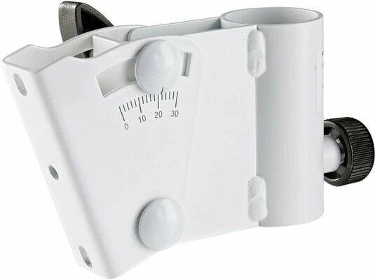 Using this stand adapter, loud speakers or sound columns can be mounted on speaker stands or wall mounts without the need for an incorporated flange. The mount is suitable for stands with a section diameter of 35 mm. The adapter can be tilted to 30° and adjusted to any height using the clamping screw. Assembly is easy as the swivel mount is first attached to the stand and then slotted into the bracket.