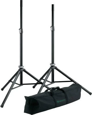 Two easy-to-carry speaker stands made of high quality aluminum in a carrying case. Fiberglass-reinforced fittings and a compact clamp with a patented push-button system affords user-friendly height adjustment and ensures stable support for the speakers. The leg construction adjusts by an easy-to-use clamping lever. Height: from 1,270 to 1,930 mm. Max. load capacity: 50 kg. Tube end(s): diameter 35 mm. Weight: 6,01 kg. Colour: Black. Adapter sleeve 21326 included.