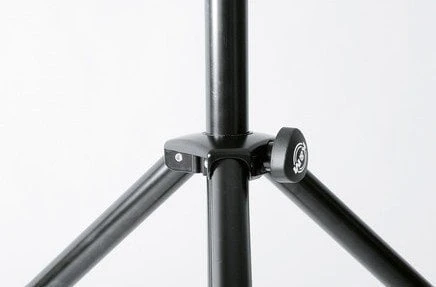 High quality aluminium speaker stand from Topline series that features three tube legs with double-cross braces and zinc die-cast clamps for professional use. The leg construction and large fixed foot end caps enhance safety and stability. The stand provides a comfortable height adjustment with a spring-loaded bolt and locking screw. Other features include a pull-out guard for the extension tube, integral anti-shock component and 35mm steel extension tube. It comes with a mounting aid on the extension rod. Adjustable height: 1375-2185 mm. Max. load capacity: 50 kg. Weight: 4.38 kg. Black colour.