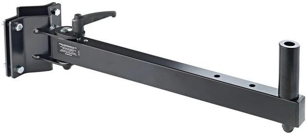 Speaker mount. Features: The tube clamp is suitable for diameters from 45 – 55 mm. Suitable for loudspeakers with 36 mm flange adapters. Max load is 50 kg. Variable swivel up to 240°. There are 3 settings for the loudspeaker distance. Colour: Black.