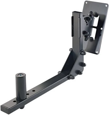 Speaker wall mount. Features: Stable loudspeaker holder for loudspeakers with flange adapters. Max. recommended load 25 kg. Thanks to its construction, the holder is almost invisible and completely covered by the loudspeaker. There are 3 settings for the loudspeaker distance to the wall. The swivel area is 145° and is variable. There are 6 angle settings. Colour: Black.