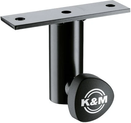 Attachable to speakers. Slip-on adapter for speaker stands with tube-diameter 35 mm. With 2 drill holes diam. 11 mm at intervals of 115 mm and locking device. Mounting bolts M10 x 40 mm, washers and nuts (2 of each) included. Dimensions: 146 x 40 x 105 mm. Function: to screw on speakers, to slip on stand. Material: steel. Weight: 0,56 kg. Finish: Black