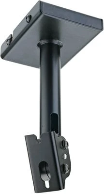 Robust and useful loudspeaker ceiling mount with 250 mm distance and internal cable management. The swivel area is +/-45 °. Within the parameters – the settings range from 0 to 45°. The clamping bracket is for loudspeakers with a vertical mounting template from 70 to 76.2 mm. For other attachment possibilities additional adapter brackets are available. A mounting bracket with side and central cable management makes mounting to the ceiling easier. Finish: Black