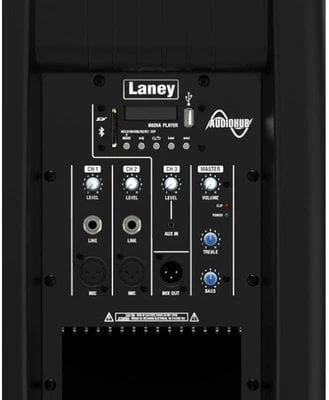 Active 3-channel All-in-One sound system with an output of 400W. It is designed for an audience of up to 200 people, equipped with one speaker with a diameter of 15″ and one compression driver with a diameter of 1″. The system can play data from SD cards, USB disks and can be connected via Bluetooth. It includes built-in mixer with three channels. Two channels have balanced microphone XLR input, unbalanced line-level Jack output and volume control. The third channel has a AUX input with a 3.3 mm jack, 2 band EQ, volume control, XLR balanced line input and Master volume. The device has three holders for transport and a 35 mm hole for stand attachement. It can be used as a stage monitor.