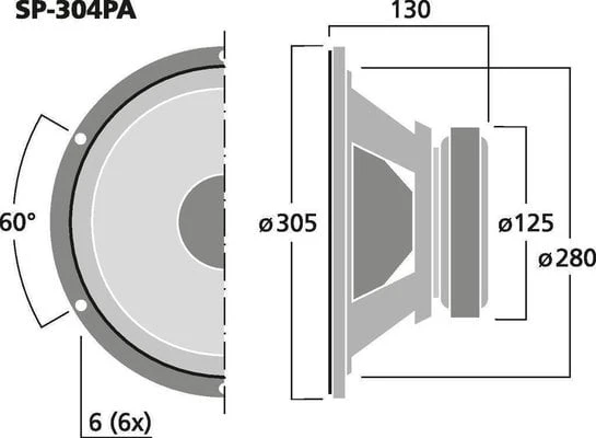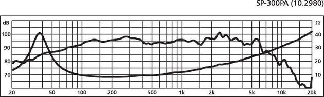 PA and power bass speaker, 175 W, 4 Ohm. For bass and bass-midrange in medium-sized systems. Peak music power output: 350W, Frequency range: f3-4,000 Hz, Sensitivity: 93 dB/W/m, Dimensions: 305 mm x 130 mm, Weight: 3kg.