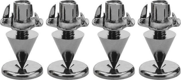 Set of chromium-plated speaker spikes (4 pcs.) with adjustable height, support disks and drive-in nuts. Slim version. Material: metal, Weight: 72 g, Packing unit: 4