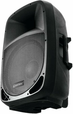 Active 2-way speaker system (10″) with 90 W for PA and DJ applications with audio player and Bluetooth. Includes MP3 player with Bluetooth receiver, blue LCD and IR remote control, SD card slot and USB input. Stream music wirelessly from your mobile devices (e.g. smartphone, tablet) via Bluetooth. Class A/B circuitry: optimum sound and power at low weight and compact dimensions. 2-way bass-reflex system with 25 cm woofer and 2.5 cm tweeter. 1 mic input with separate level controls, line input, RCA, 3.5 mm AUX input. Master control with 2-way tone control, clip and power LED. Line output for linking further active speaker systems. Stable plastic housing with protective grille and handles. Flange for stand installation. Can be used as floor monitor, standing, on a speaker stand or wall holder.