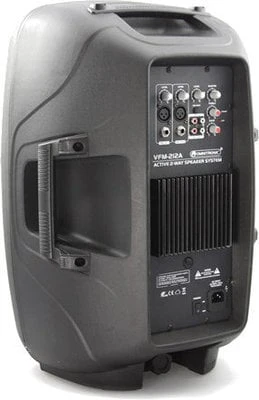 Active 2-way speaker. VFM series. Output power 140W RMS, plastic construction. Box is equipped with a Class A/B amplifier for optimal and accurate sound reproduction, 12″ woofer and 1″ tweeter. Bassreflex. Contains 2x microphone input XLR/Jack 6,3 mm, line input and RCA output, all input channels have their own Level Control. 2-Way Audio correction and control of the entire system output volume (MASTER LEVEL). The power-on LED (POWER) and overload (CLIP) speaker. Robust design, protective speaker grille, side handles for easy handling and concealed nest on a tripod. Speakers are suitable for fixed installations and mobile events.
