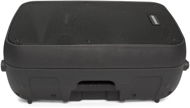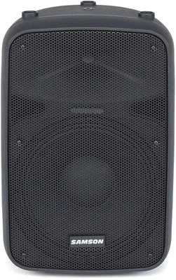Compact two-way active loudspeaker suitable for live performances and DJs. This Class D speaker has 1000W power output, frequency response 58Hz-20KHz, it is fitted with 12″ low-frequency speaker with extended range and 1.34″ titanium compression driver. It uses Samson R.A.M.P. DSP technology, has two XLR- 1/4″ combo input channels with independent volume control, switchable Mic/Line power driver (1 channel), Master Volume with peak indicator, 3-band EQ, HPF presets and XLR Line Output with enable extension of additional speakers. It is made of polypropylene construction with durable design, on the front has a durable metal grill, two ergonomic side handles, integrated 1 3/8″ speaker stand and dual-angle floor monitor positioning options. Dimensions: 546 x 275 x 356 mm. Weight: 12.8 kg. Color: black.