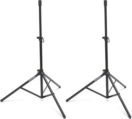 Two lightweight, telescoping speaker stands, each with tripod base