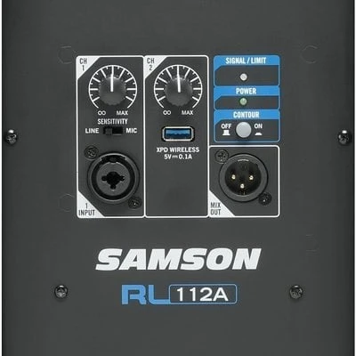 Channel 1 of the RL112A onboard mixer features an XLR-6,3 mm jack combo jack – complete with a gain-matching mic/line switch – to accommodate nearly any input source. Channel 2 is dedicated to receiving the signal from a Samson XPD wireless microphone (not included), making it the perfect choice for conferences, lectures, rallies, fitness classes, and entertaining. Individual level knobs set the perfect balance. The Mix Out jack (XLR) passes the combined signal along to additional equipment as you buildout your system. Switching on the Contour (EQ) circuit can enhance the sound in challenging venues.
