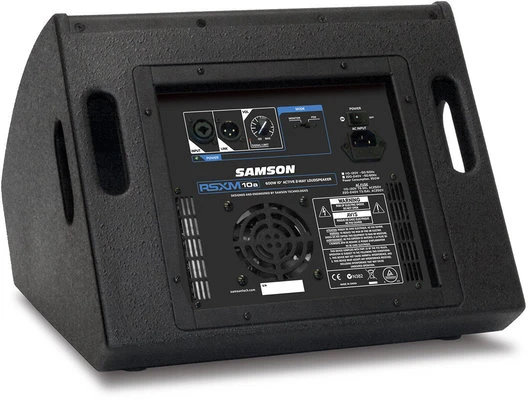 Samson’s RSXM10A 2-Way Active Stage Monitor brings exceptional monitoring versatility, ultra-efficient Class D power and the durability of all-wood cabinet construction to touring musicians/DJs, front-of-house engineers and live sound professionals. The RSXM10A produces 800 watts of Class D power via its respective 10″ low frequency driver and premium 1” horn-loaded tweeter. A compact, coaxial design gives the monitor amazing portability with impeccable sound. In addition, the RSXM10A has an integrated 1 3/8″ pole mount receptacle and a Monitor/FOH optimization switch for added flexibility.