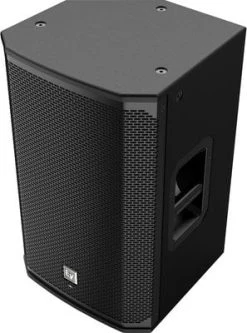 Two-way, bi-amplifier powered, bass-reflex type loudspeaker from DBR series that represents a perfect balance of size and performance, with 1000W of power and outstanding resolution at any output level. Ideal for front-of-house, floor monitoring applications or even the stage side fills, it is an ideal choice for a wide range of applications. It is equipped with a 12” cone LF driver with ferrite magnet and 2” voice coil, and a 1.4” throat compression HF driver, both fitted into a plastic bass-reflex type enclosure. The enclosure provides two side handles for convenient transport, bottom and rear mounting hardware suitable for M8 x 15mm eyebolts, and a 35mm pole socket. Other features include a 4-speed fan cooling, two combo inputs plus two RCA pin inputs and an XLR3-32 output. Frequency range: 52 Hz-20 kHz. Nominal coverage: 90° x 60°. Max SPL: 131 dB. Crossover: 2.1 kHz, FIR-X tuning (linear phase FIR filter). Dimensions: 376 x 601 x 348 mm. Weight: 15.8 kg. Black finish.