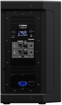 Two-way, bi-amped powered, bass-reflex type loudspeaker from Yamaha DZR series. Best-in-class SPL performance, sophisticated DSP processing, unrivaled low-frequency bass sound reproduction. DZR delivers on all fronts realizing a truly professional sound delivered with a level of power that belies its compact, lightweight design. It is equipped with a 10″ cone LF driver with neodymium magnet and 3“ voice coil. 1″ throat compression HF driver with neodymium magnet, 2“ voice coil and titanium diaphragm. Power rating: Dynamic: 2000 W. Continuous: 1300 W. Maximum output level: 137 dB SPL. Amplifier class: Class-D. Frequency range: 44 Hz – 20 kHz. Crossover: 1,8 kHz (FIR-X). Sampling frequency rate: 96 kHz and FIR Filter. A/D D/A Converters: 96 kHz AD/DA. Analog IN: XLR/6,3 mm jack combo x 2, Line level (Maximum +24 dBu), Input impedance 20 kOhm, Analog OUT: XLR3-32 x 2, CH1: THRU (fix), CH2: THRU or DSP OUT. USB 2.0 Host 5 V 500 mA for USB memory DATA storage/load. Handle: Aluminium die-cast, Top x1, Side x1. Dimensions: 315 x 537 x 345 mm. Weight: 17,9 kg. Colour: Black